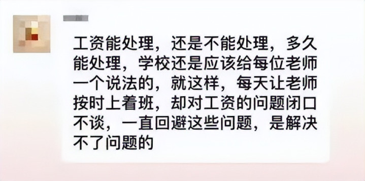 “国庆发薪”“10月20日前结清”——岳池县师达实验学校的舒老师翻着聊天记录里的空头承诺,工资卡已经半年没收到过完整收入。据教师们透露,这所民办学校隶属于某房地产集团,今年秋季刚收的学费,全被集团拿去填补地产项目亏空的高利贷账目。“家长辛苦凑的学费救了开发商,我们的房贷、生活费却没了着落!”教师群里的催薪信息刷屏,满屏都是无奈的吐槽。